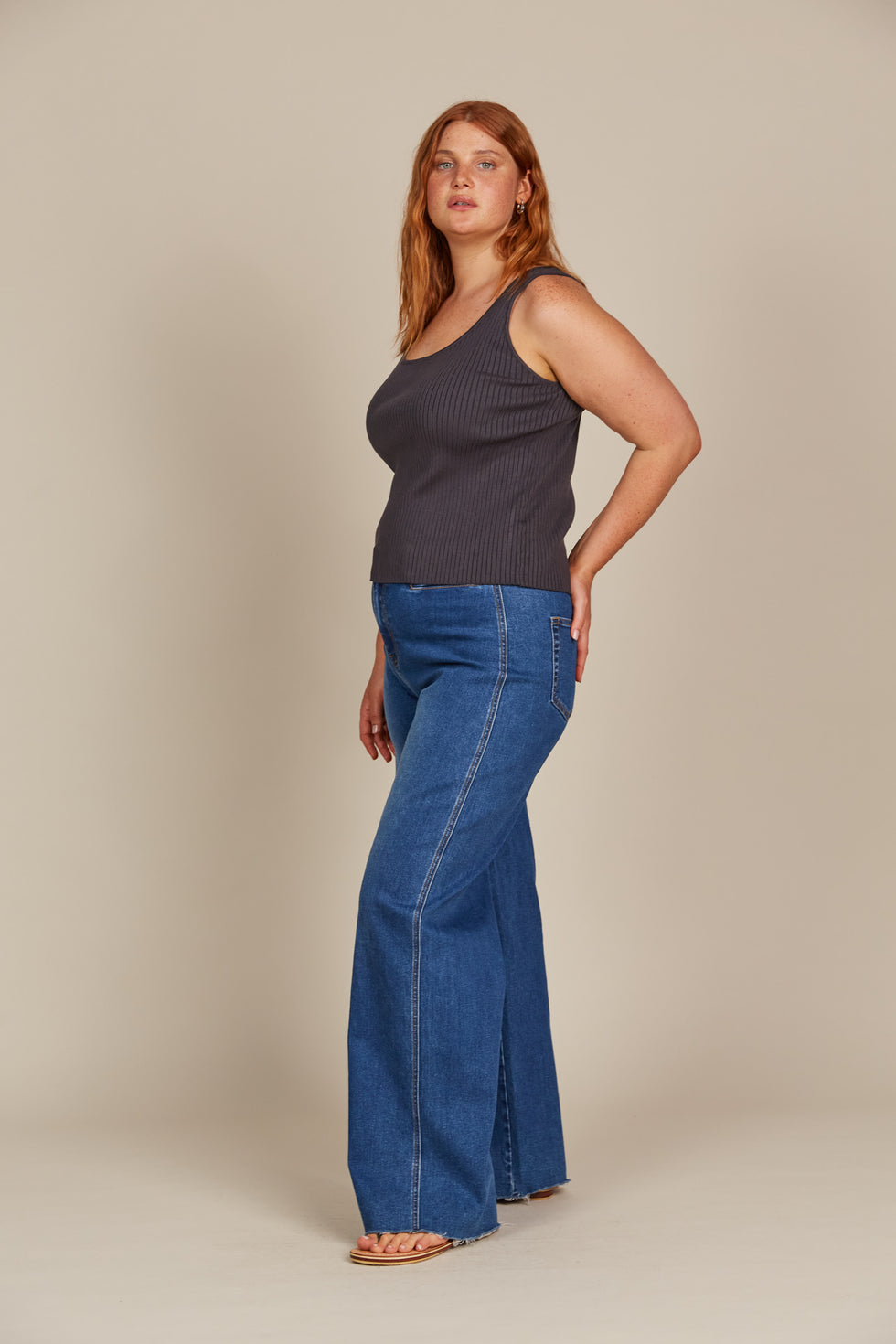 Meet your new summer essential: the Adele Tank. This tank is the ultimate basic, pairing perfectly with everything in your wardrobe. In a soft and stretchy rib knit, this tank sits comfortably at your hip, featuring a scoop neck and sleeveless design for easy wear. With its versatility, the styling options are endless! Whether you tuck it into trousers or a skirt or layer it under a cape or button-down shirt, you'll always look effortlessly chic. Trust us, you'll want one in every colour!