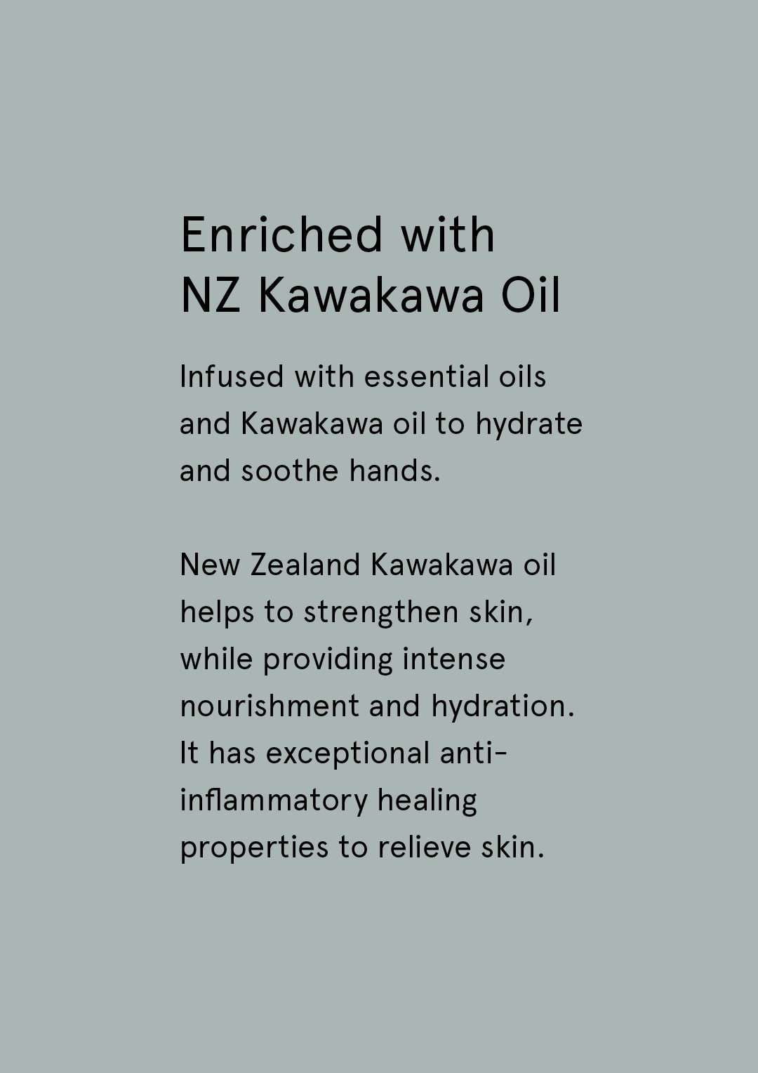 Pamper your hands with the aroma of patchouli, coconut, almond, vanilla and musk. Infused with NZ Kawakawa Oil, essential oils and SPF15.