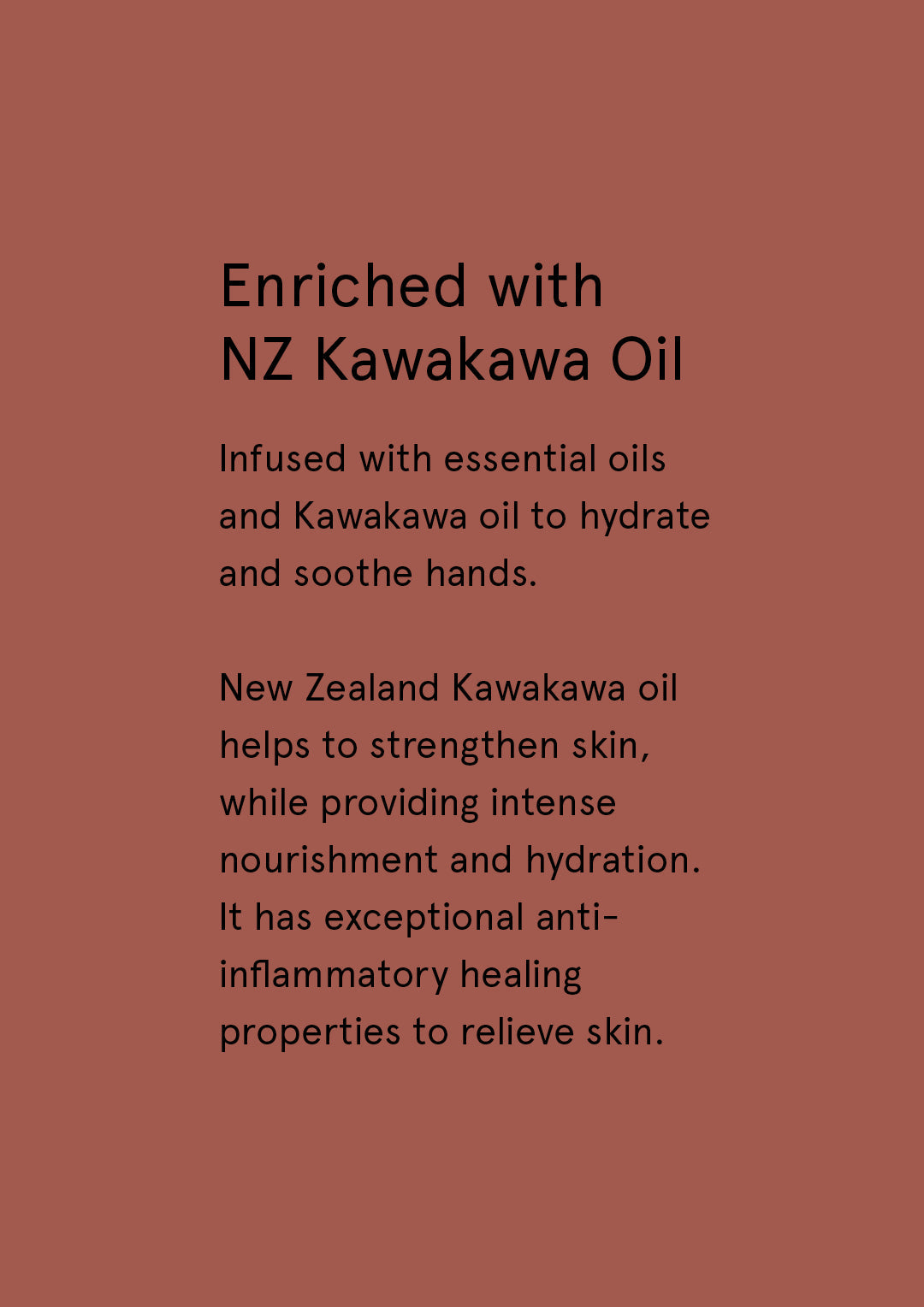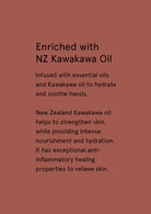 Perfumed with a zesty citrus aroma of lime, mandarin, dewberry, peach and musk. Lavished with NZ Kawakawa Oil, essential oils and SPF15.