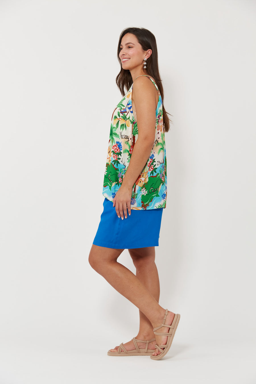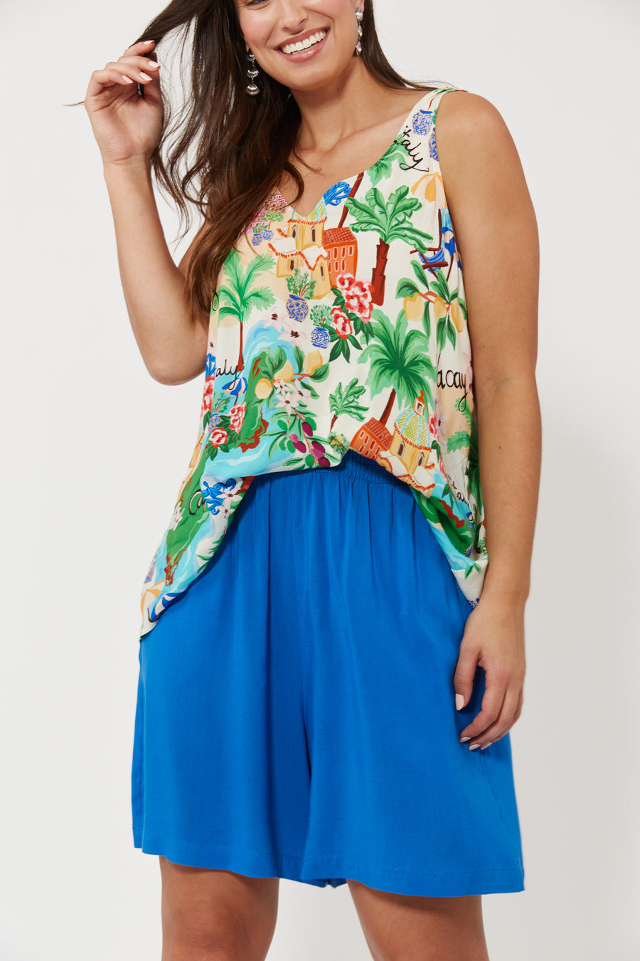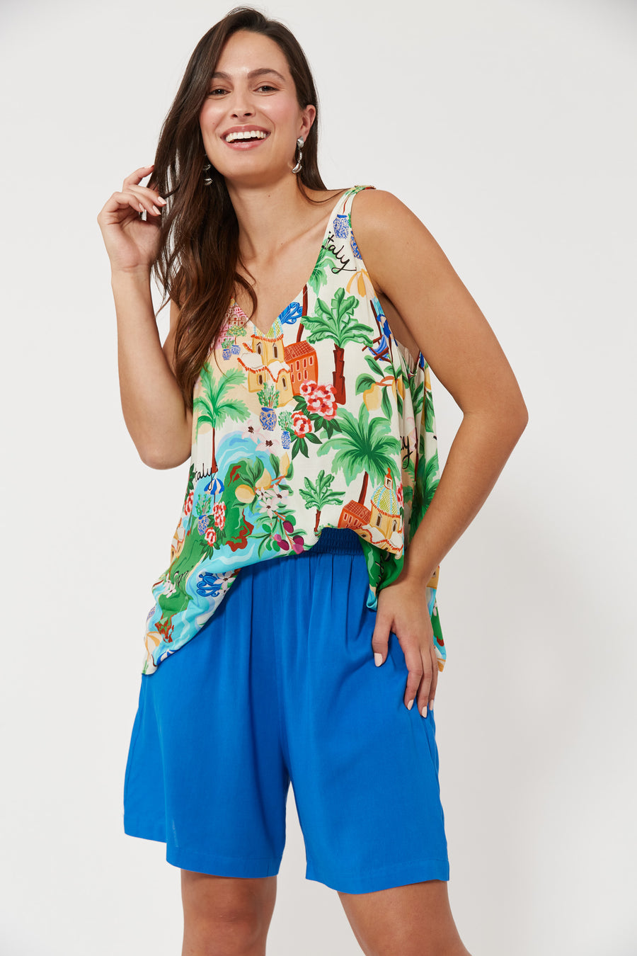The Isola Tank is a must-have for your daily wardrobe rotation, combining lightweight comfort with effortless style. Its versatility knows no bounds, adapting from laid-back outings to more dressed-up affairs. With a loose, airy silhouette and a flattering V-neck, this tank exudes relaxed charm, finished with adjustable shoulder straps for that just-right fit. Style it with shorts and sandals for an effortless, everyday look.