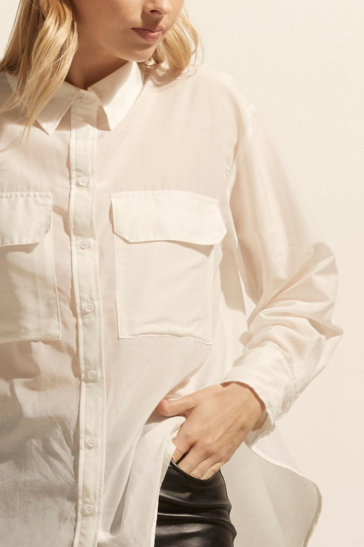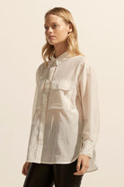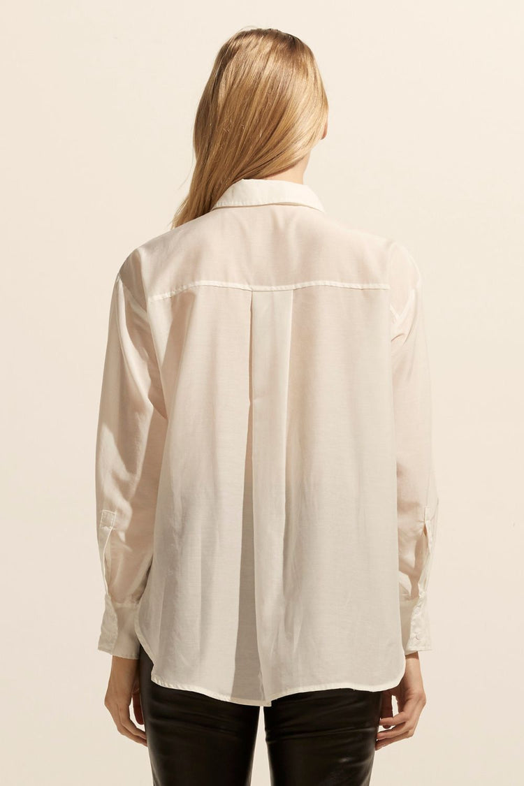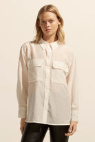 the abroad top artfully merges the best of masculine structure and feminine elegance. crafted in a quality cotton silk blend, this timeless piece is a robust yet elevated basic to carry you through the season and beyond. see product details below.
