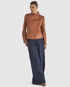 A luxurious staple, the Airborne Leather Jacket is designed with an asymmetric zip closure and panel detailing for a sleek finish. Fully lined for comfort, this piece is crafted from soft leather that molds beautifully to the body. A refined take on edgy styling, this jacket is a wardrobe essential. Layer it over everything from knits to dresses for effortless sophistication.