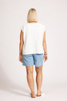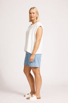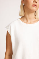 A soft waffle knit top with relaxed ease, crafted from 100% cotton. Features a high scoop neckline, cap sleeves with rolled edge, and relaxed fit. This top boasts good coverage, whilst maintaining great breathability.