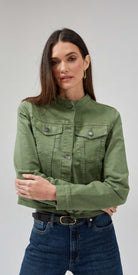 An effortless slim-cut jacket made in comfort stretch denim. Collarless