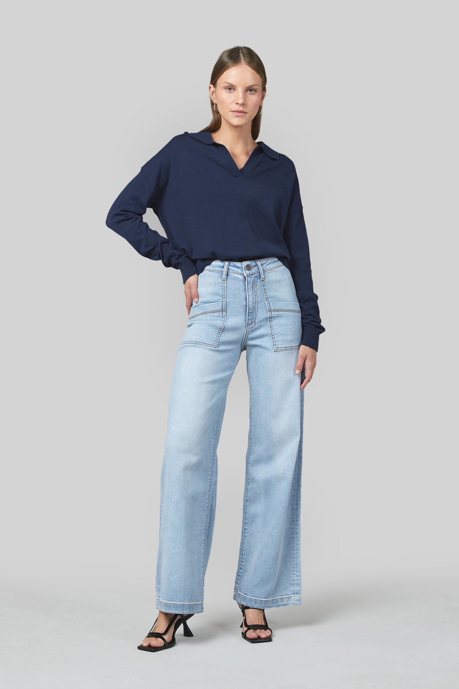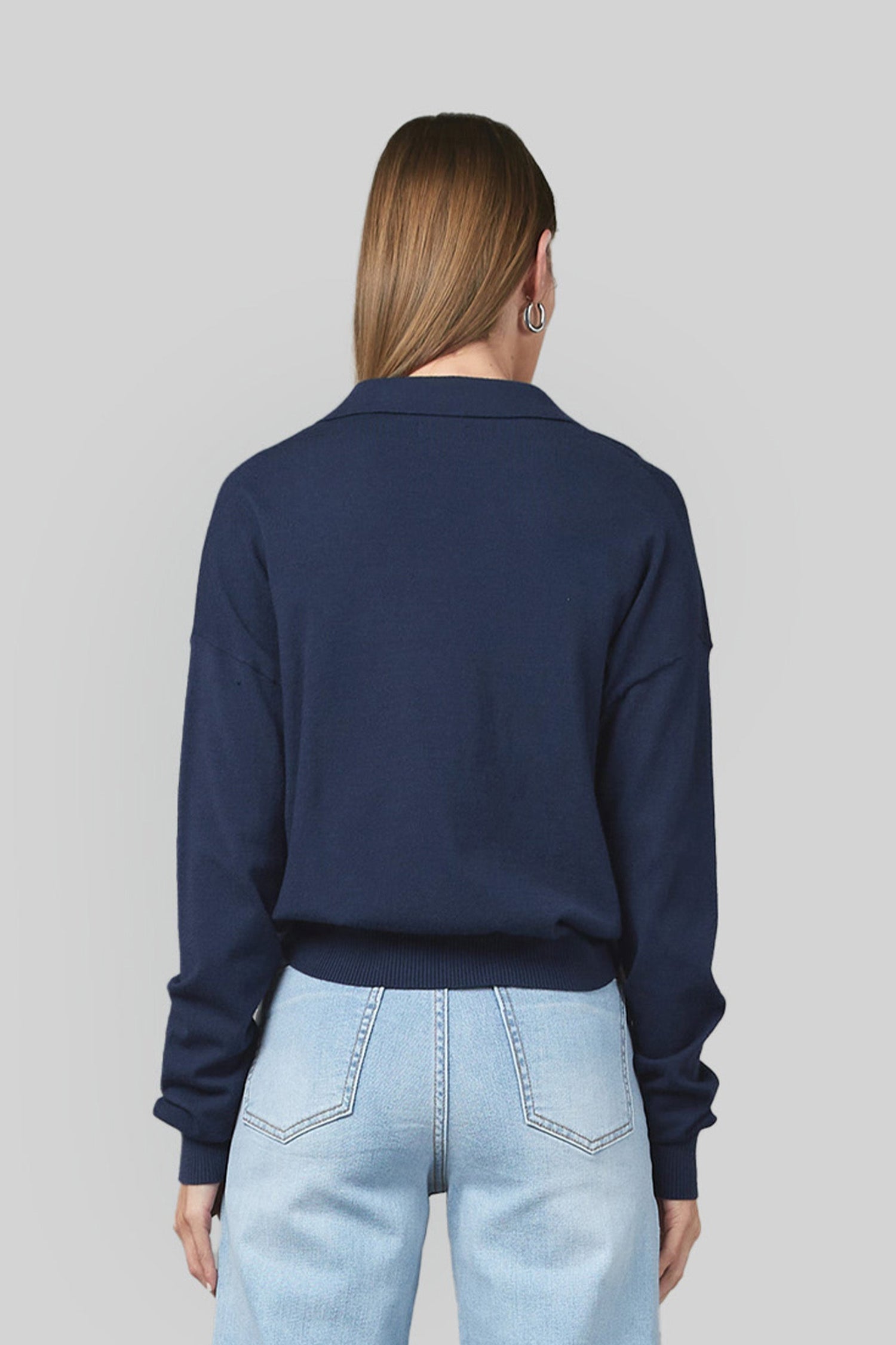 The Rita Top is a polo-inspired silhouette knitted from Viscose and Nylon blend. Offering a relaxed fit with an open neckline finished with ribbed trims along the hems.