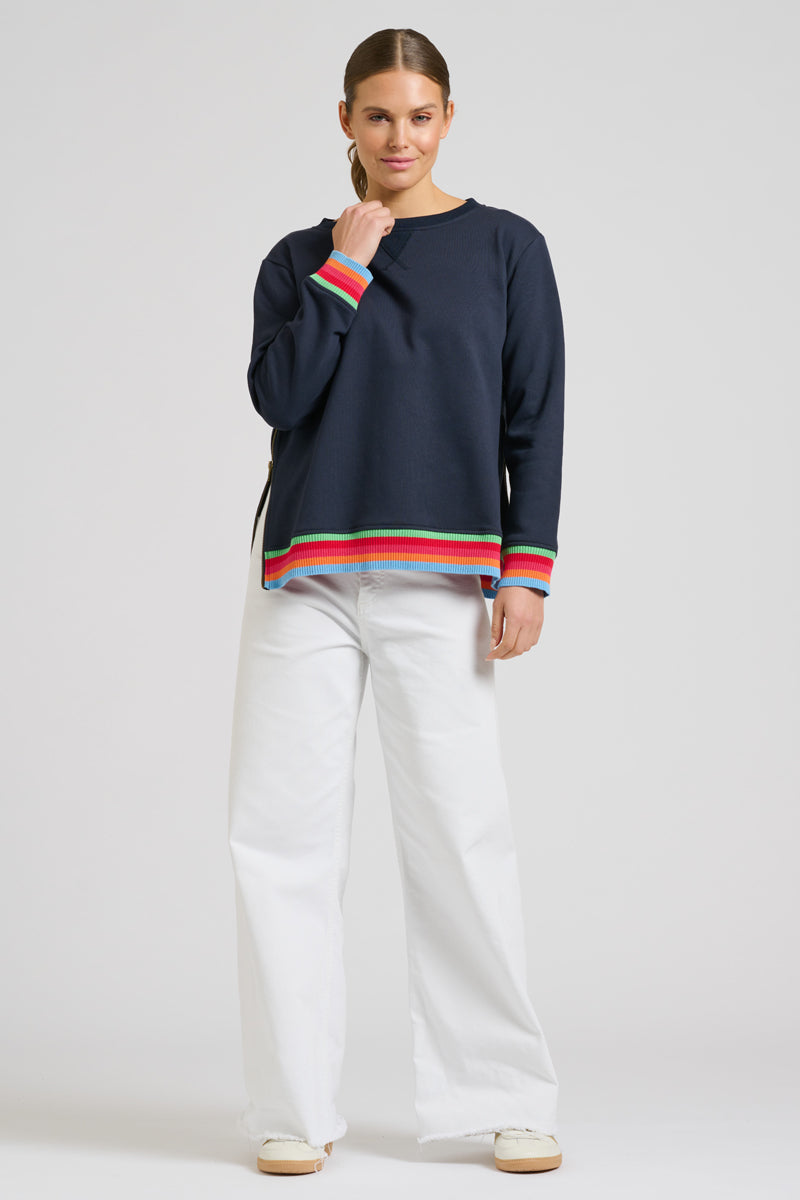 Zipside Classic Cotton Sweatshirt - French Navy Rainbow