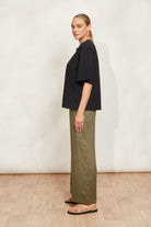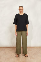 The Studio T-shirt embodies versatility. This t-shirt offers a relaxed, boxy fit constructed from a comfortable 100% cotton fabrication. With a round neck, elbow-length sleeves, and a hip-length silhouette, this tshirt is a wardrobe essential. Pair it with your favourite casual pieces for laid-back days, or combine it with refined pieces for a sophisticated look.