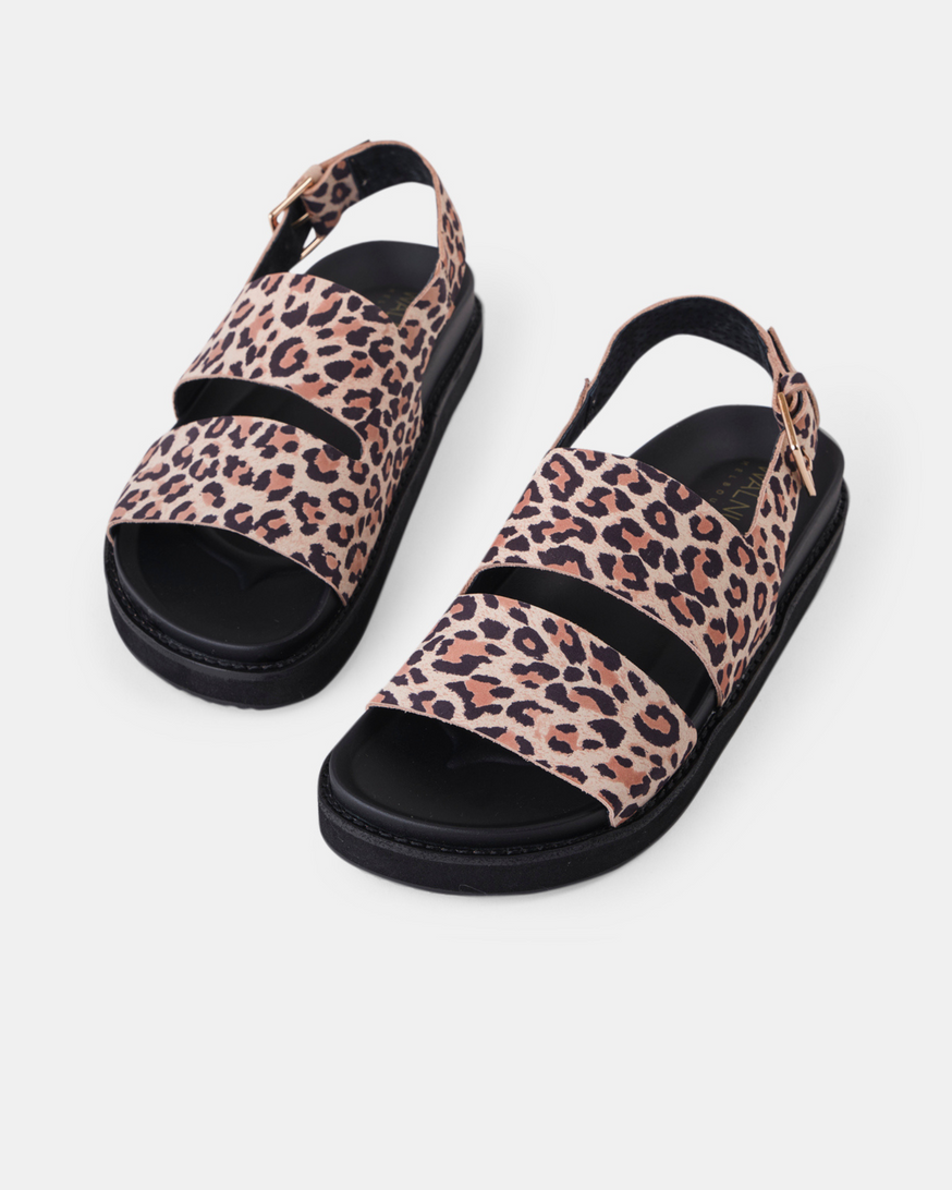 Looking for a chunky shoe to elevate your outfit? The Frenchy Sandal in Ivory Leopard is a chic summer shoe, complete with thick feature straps and a wide, adjustable ankle strap for a secure fit.