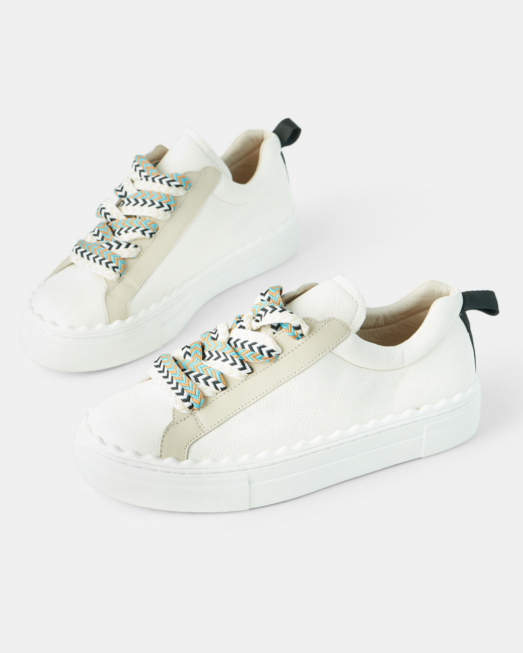 But what truly sets our sneakers apart is our signature scalloped edge outsole and the delightful addition of decorative laces, designed to inject a vibrant burst of color into any ensemble.