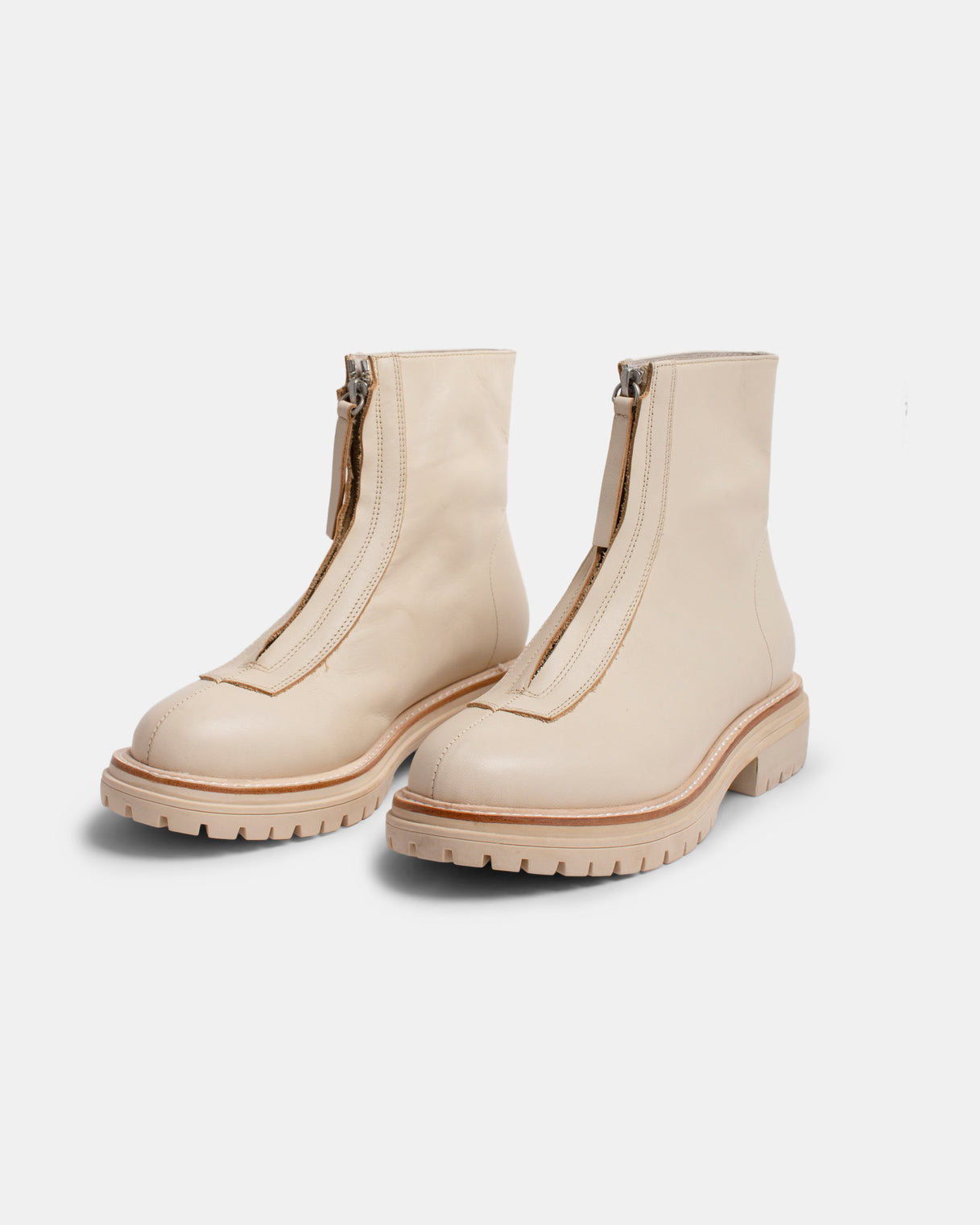 Walnut's Almond Leather ankle boots are defined by a front zip fastening. They’re crafted from a smooth leather with a chunky silhouette, rounded toe and are set on a lug sole.