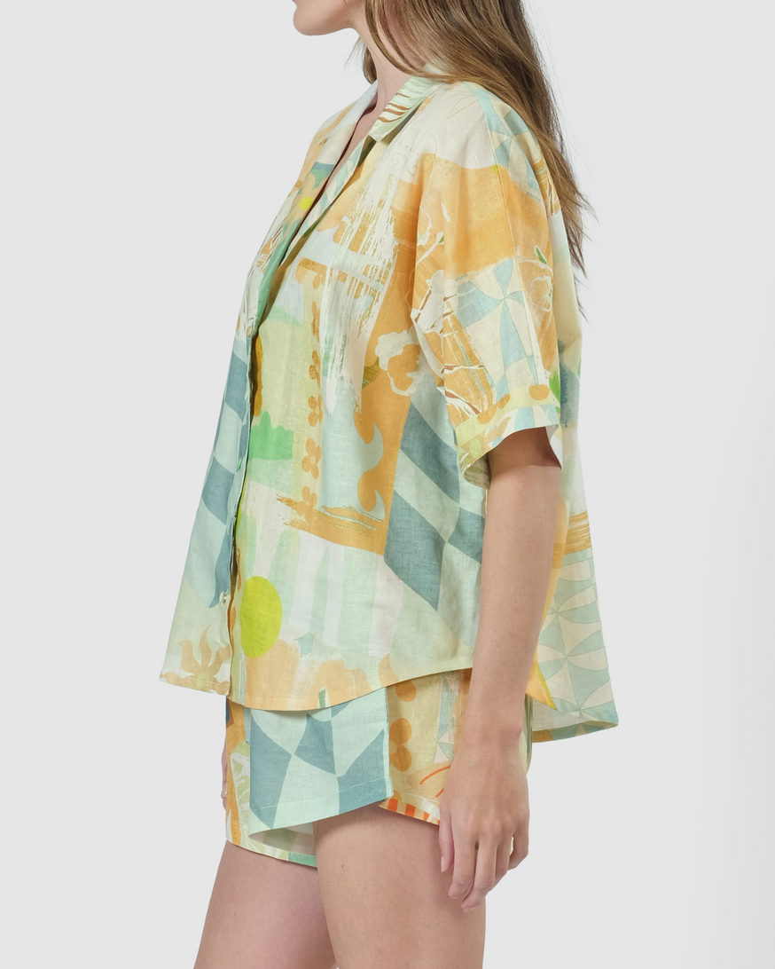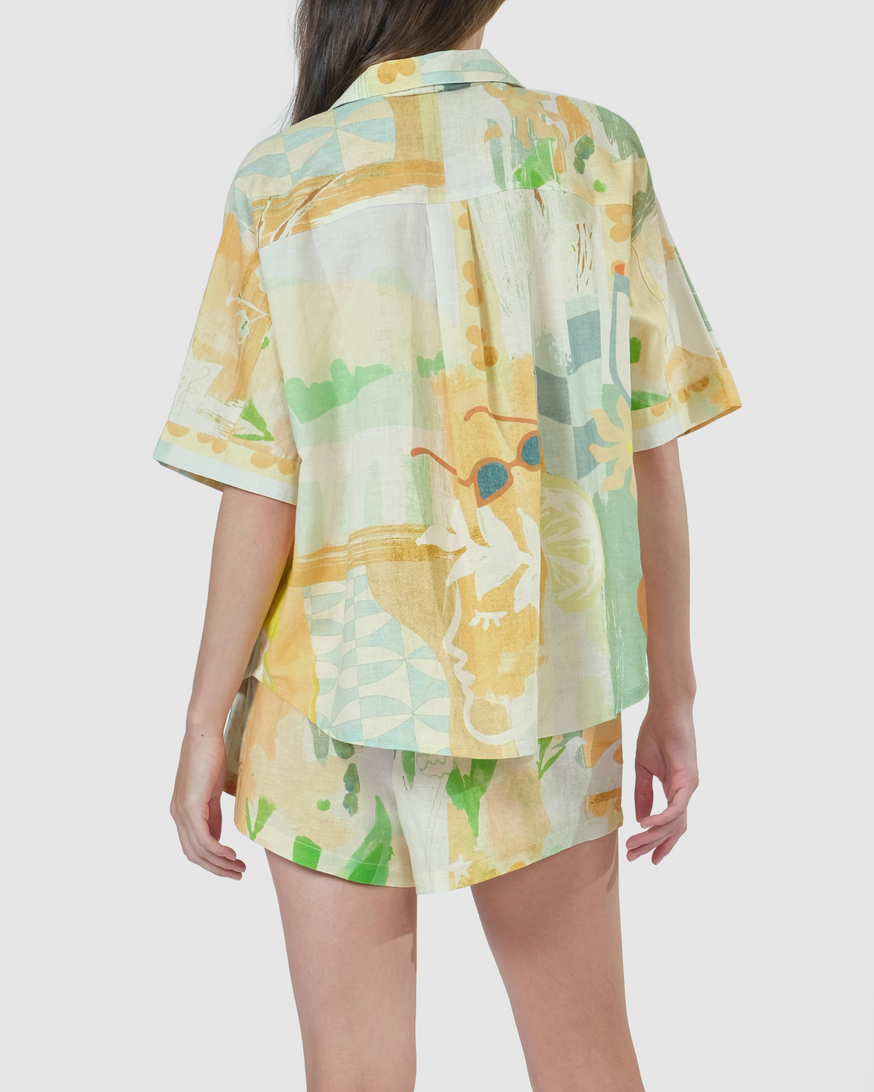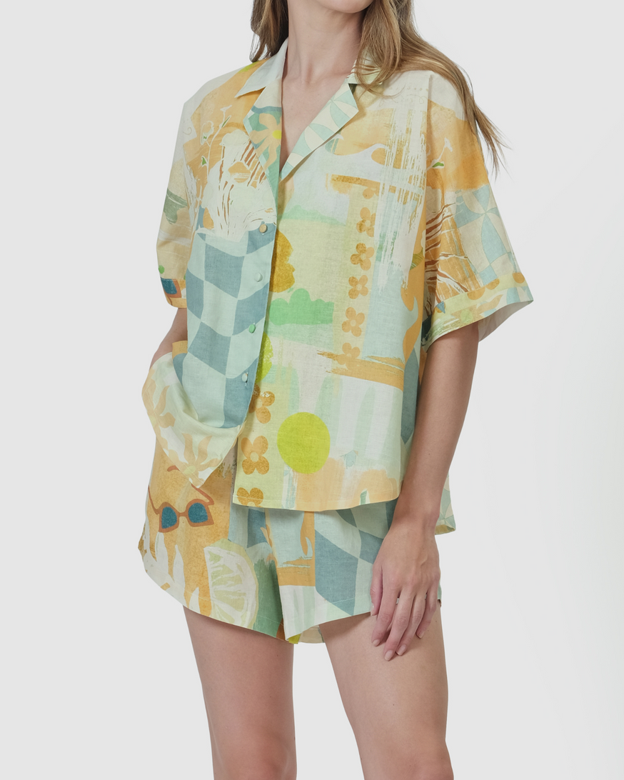 ! Its oversized relaxed fit and light, breathable fabric make it the perfect choice for warm weather, exuding effortless chic and comfort all in one.