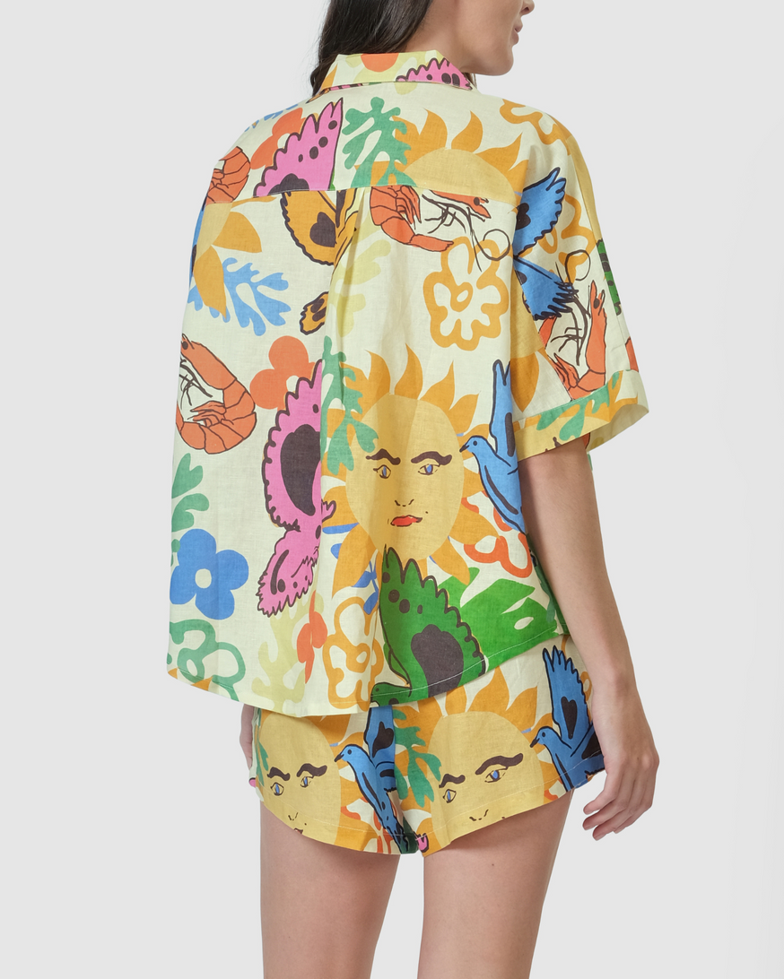 Elevate your style with the Tropez Shirt in Soiree! Its oversized relaxed fit and light, breathable fabric make it the perfect choice for warm weather, exuding effortless chic and comfort all in one.