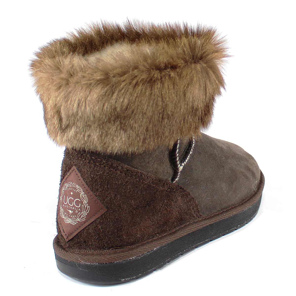 Our classic ‘Ugg Mini’ short ankle boot with a touch of luxury. The "Ugg Mini Fox" is crafted with Australian merino double face sheepskin and finished with a luxurious ethically sourced Australian Fox cuff. This mini sheepskin boot features the high-density Eva sole for long-lasting, durable wear. A perfect hassle-free option with an easy pull tab for an active lifestyle that will keep your feet comfy and toasty.