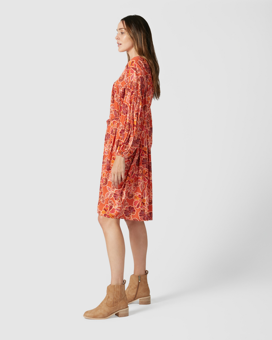 One of the most versatile dresses in our first Winter collection, the Vail Dress looks beautiful dressed down with white sneakers and perfect for evening paired with a wedge or heeled mule! In our bold Aztec Rose, this dress has a braided tie waistband and a gorgeous V-neck style neckline.