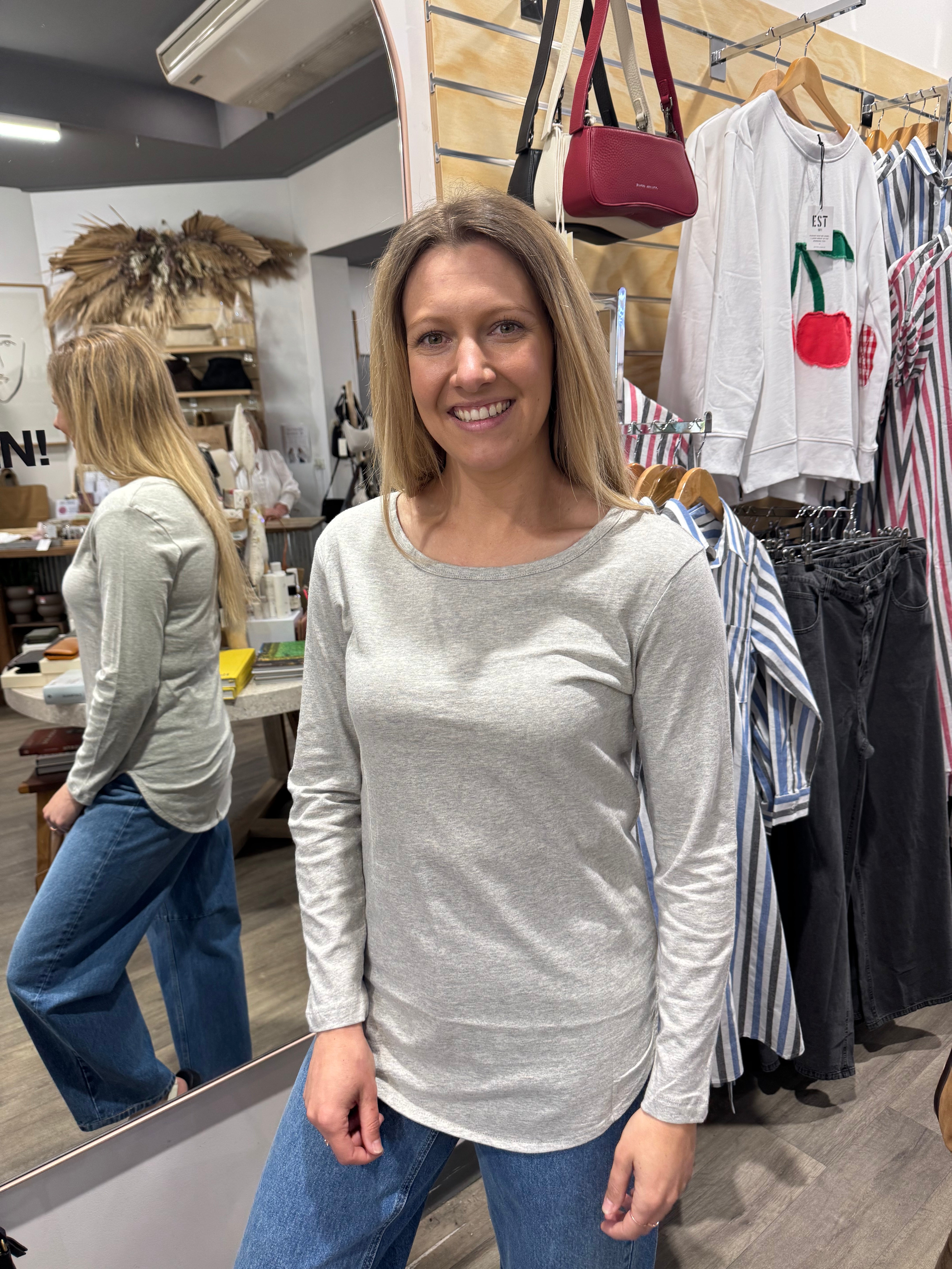 A long sleeved version of the Charlotte Tee - the Clé Layla Long Sleeve Tee features a simple, round neckline and a longer length front & back hem with flattering scooped sides.