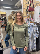 A long sleeved version of the Charlotte Tee - the Clé Layla Long Sleeve Tee features a simple, round neckline and a longer length front & back hem with flattering scooped sides.