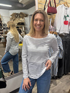 A long sleeved version of the Charlotte Tee - the Clé Layla Long Sleeve Tee features a simple, round neckline and a longer length front & back hem with flattering scooped sides.