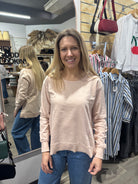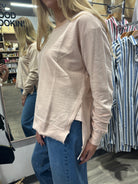 Featuring a soft rounded neckline and a ribbed hi lo hemline that runs longer at the back. This comfortable style will be a staple item this Season.