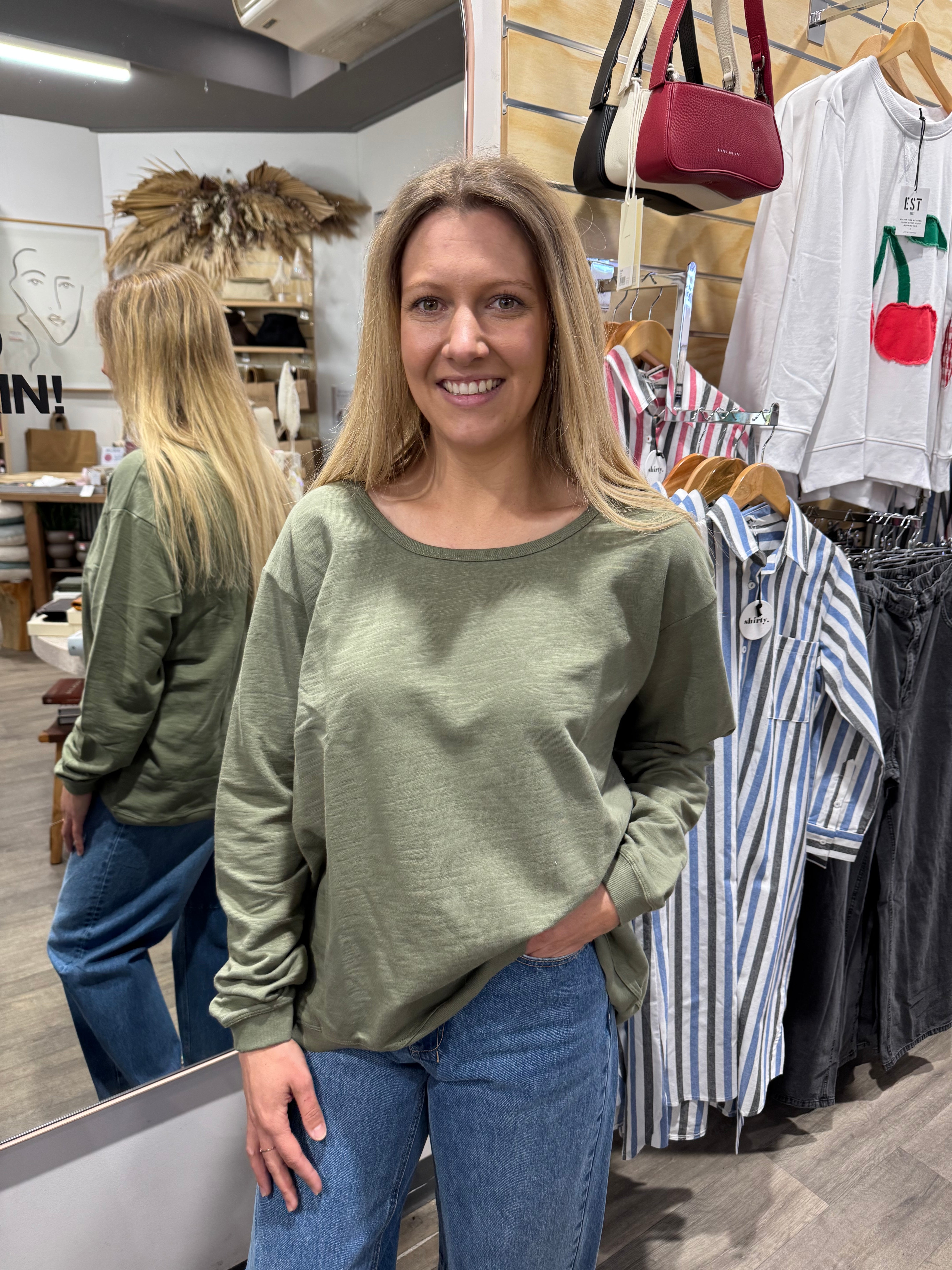 Featuring a soft rounded neckline and a ribbed hi lo hemline that runs longer at the back. This comfortable style will be a staple item this Season.