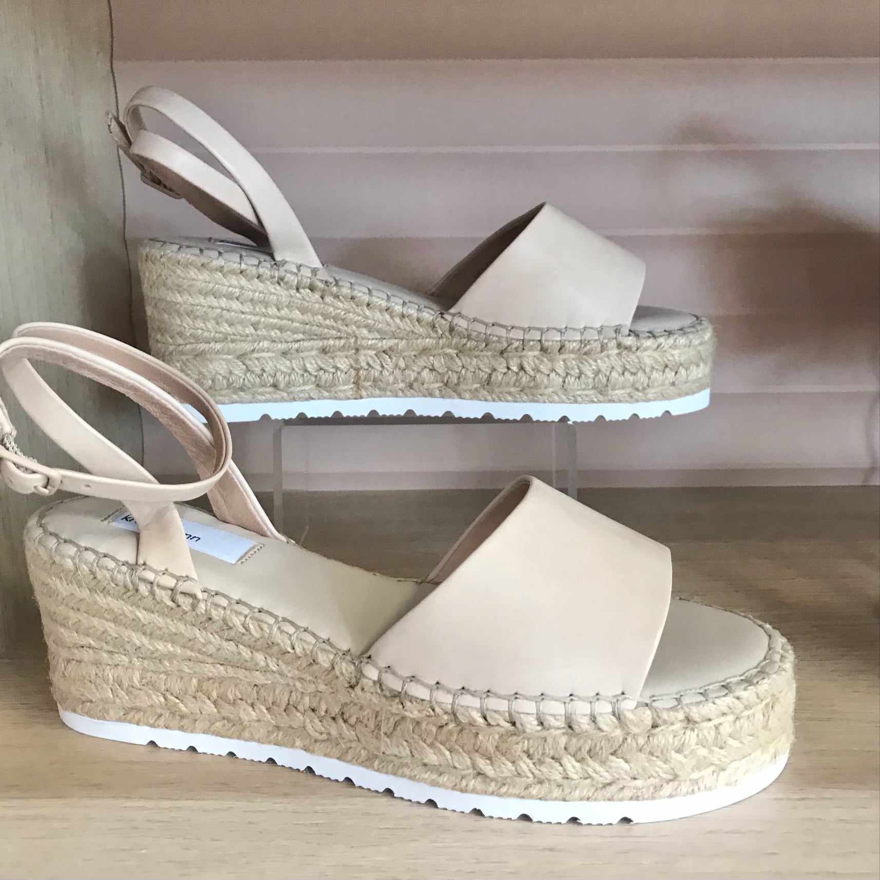 when chic meets high fashion, you hone in on these timeless wedge sandals. the peep-toe design includes a secure soft leather strap to support the arch, as well as a discreet adjustable ankle strap to hold the foot firmly in place. the base of these bold wedges is made of intricately woven straw that creates a stunning pattern which is finished off with a crisp white rubber sole. wear this neutral shade of leather wedges with denim pieces, linen and anything else in your spring/summer wardrobe. see product details below.