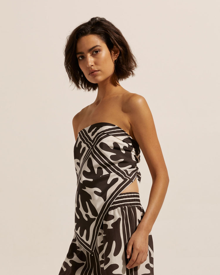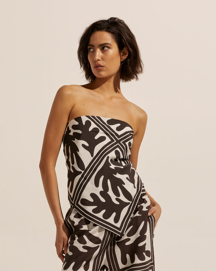 wear by the water or inject a chic vibe into daytime dressing. this scarf is crafted in a quality cotton and silk blend and printed in our signature frond design. pair with the matching breeze pants and reflex top for luxe layering or tie this beautiful scarf around a handbag or as a stylish headband. see product details below.