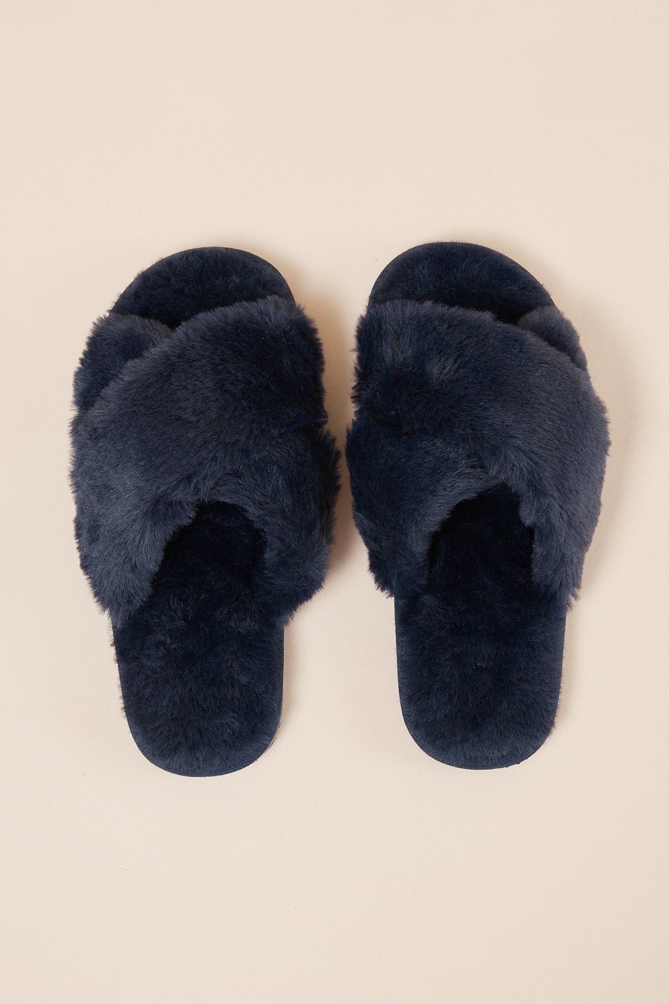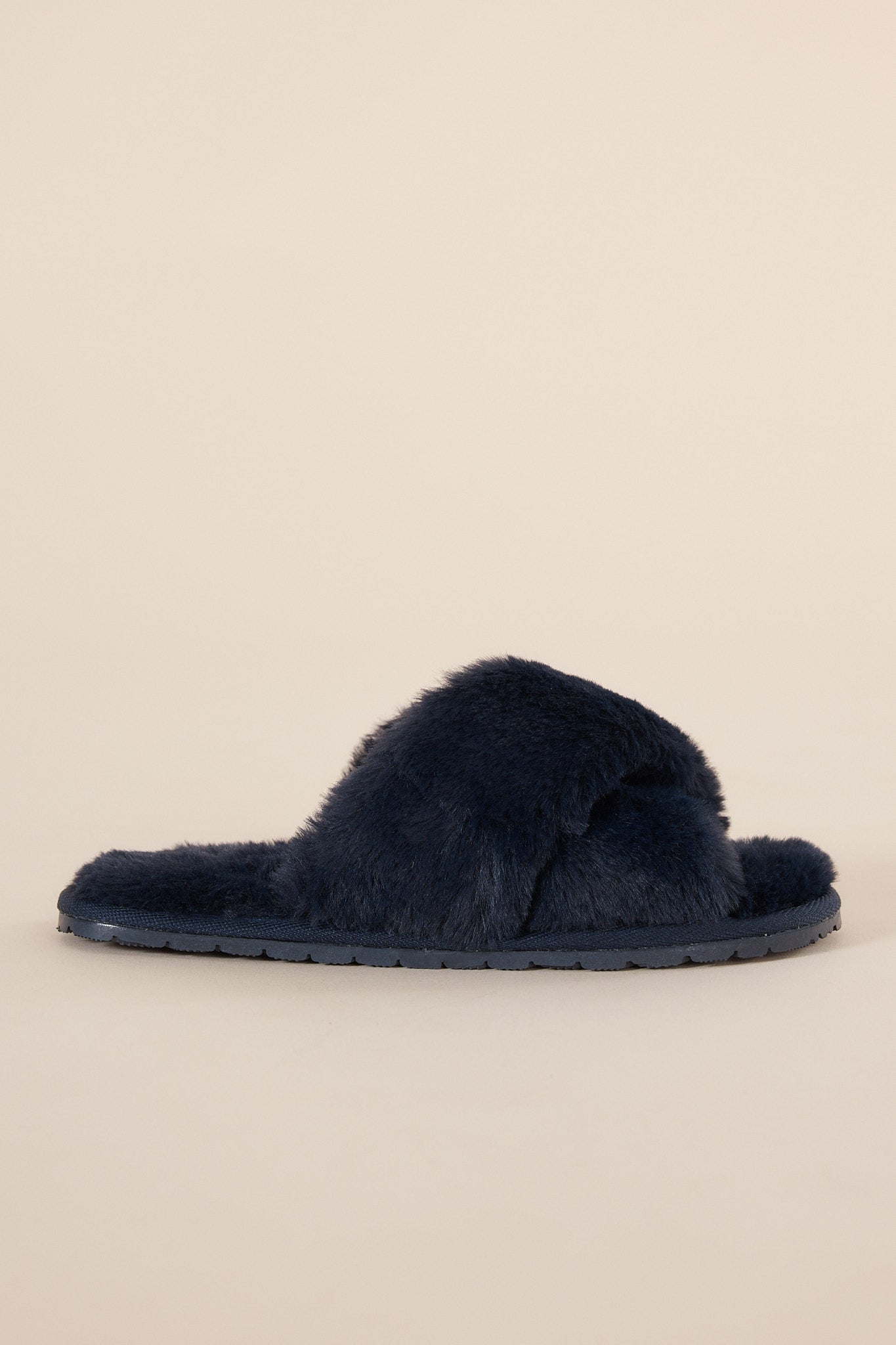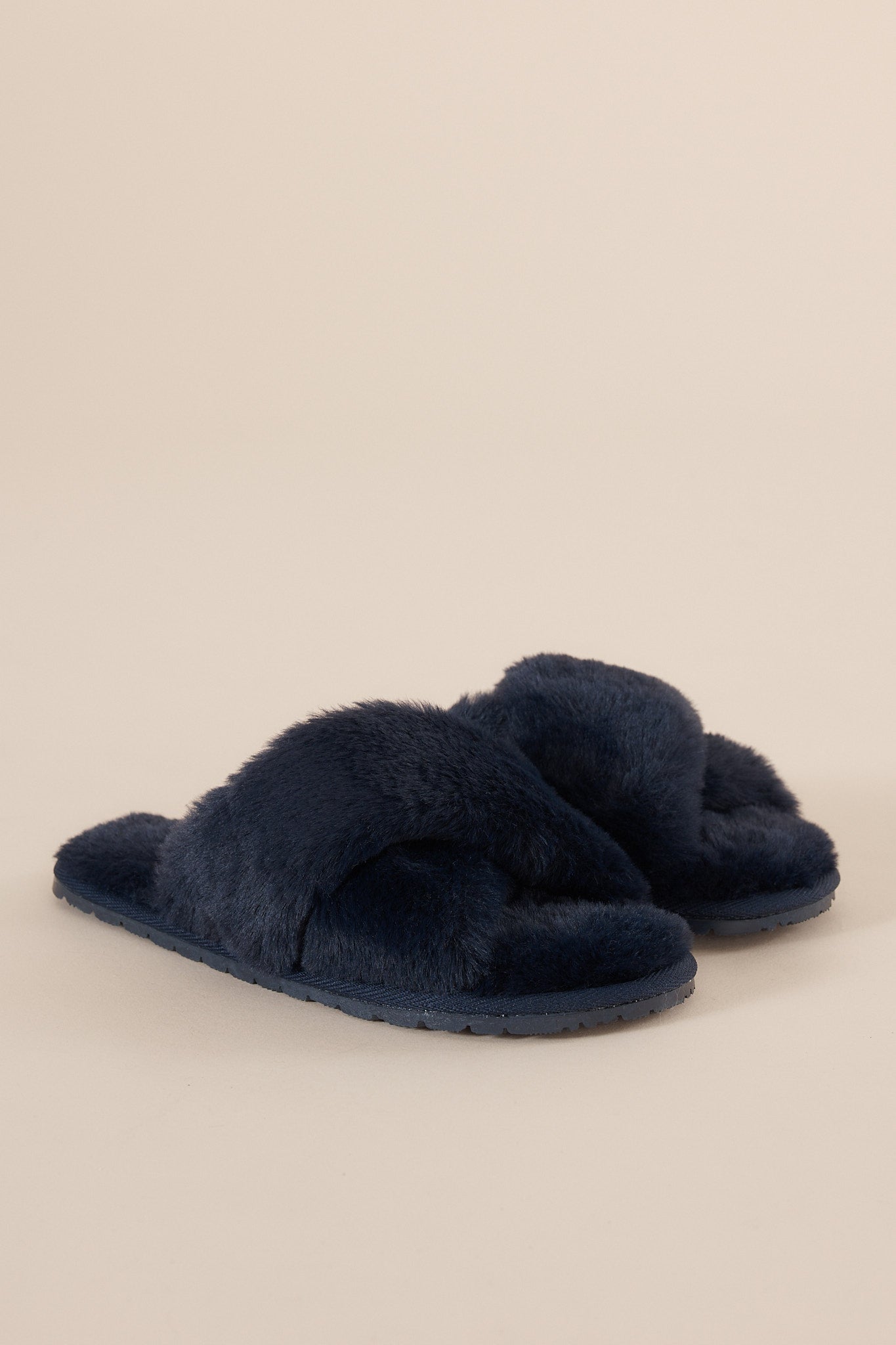 Cross Over Open Toe Plush Slipper - Milan Navy