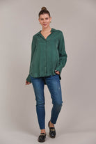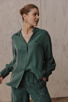 Every closet deserves a timeless button-down, and the Eden Shirt offers a luxurious take on this classic. Made from a soft cupro blend, it features an elegant drop shoulder and a flattering curved high-low hem that instantly elevates any look. Try it tucked into a flowing maxi skirt, layered over a tank with wide-leg pants, or buttoned up with jeans. However you style it, you'll always feel good in the Eden Shirt.