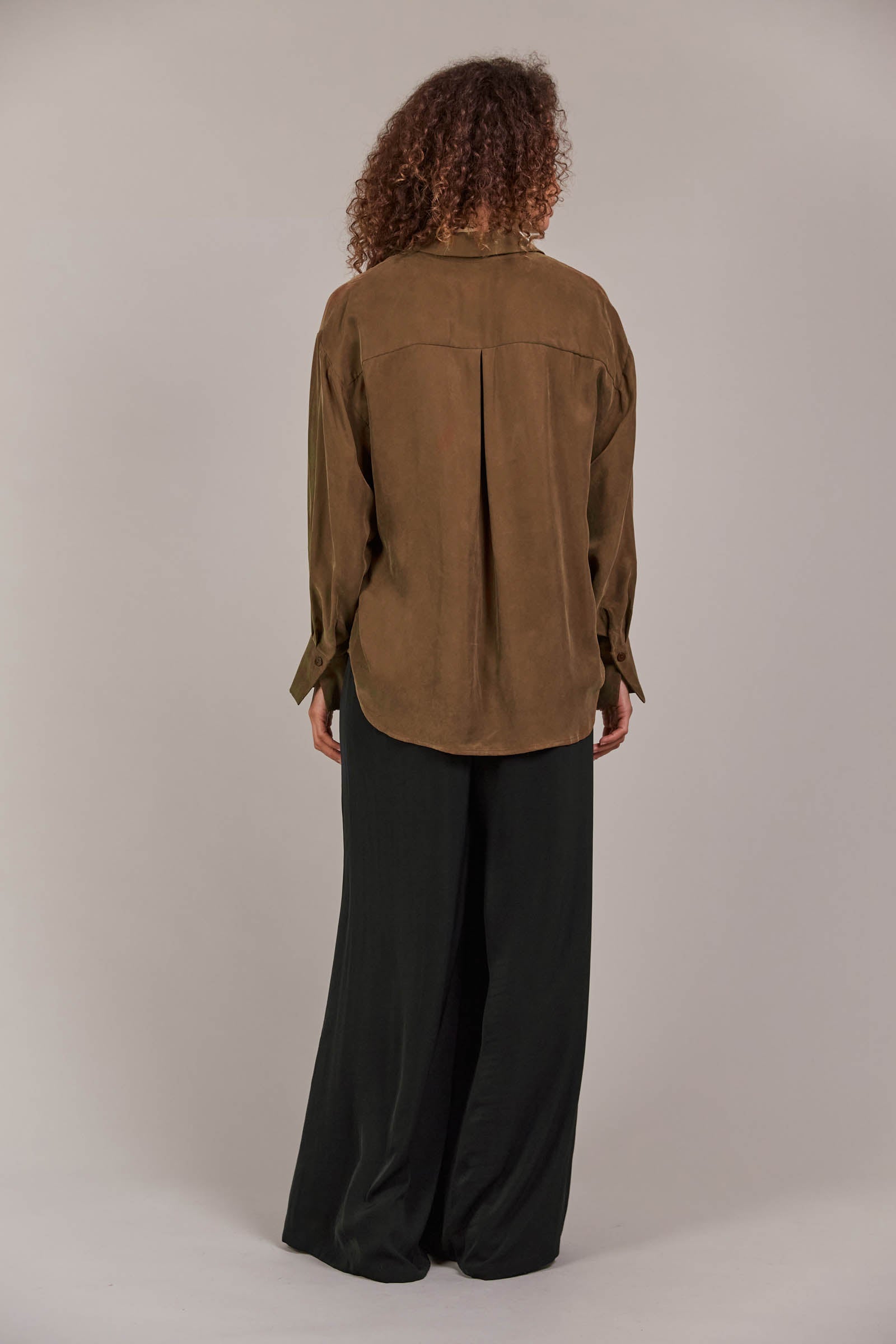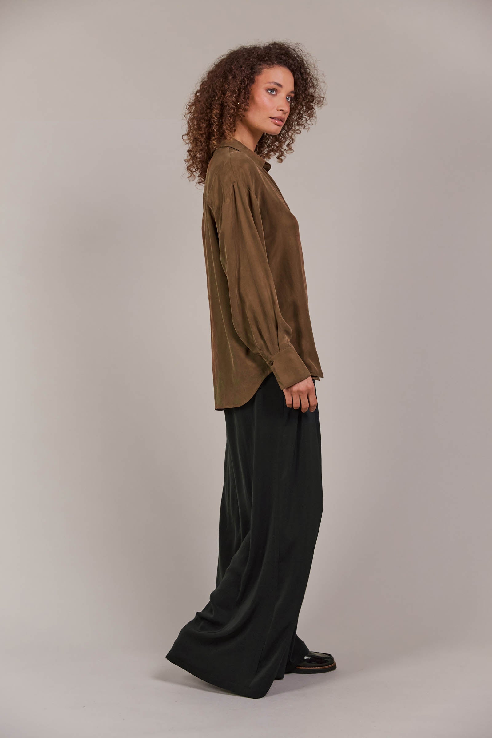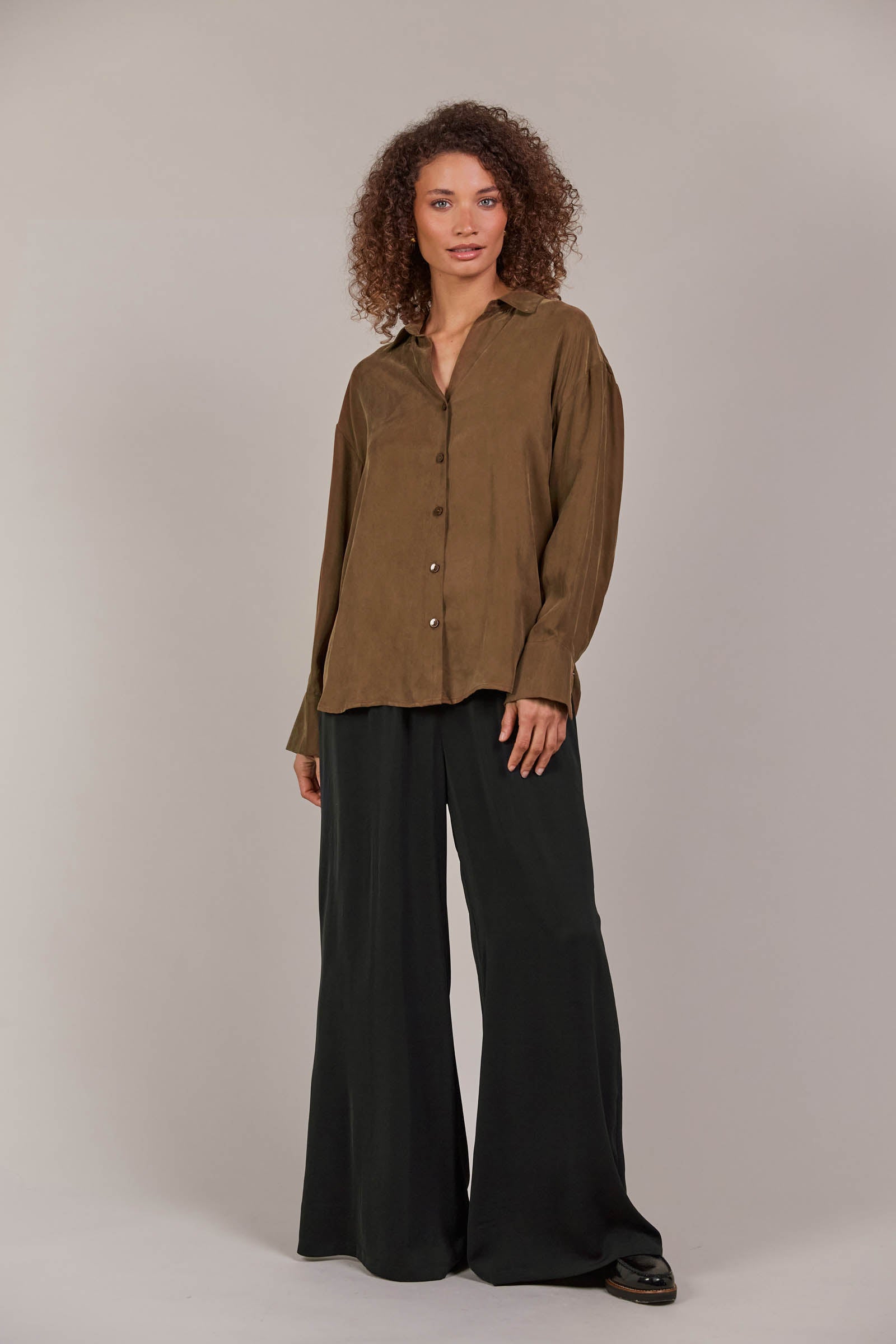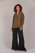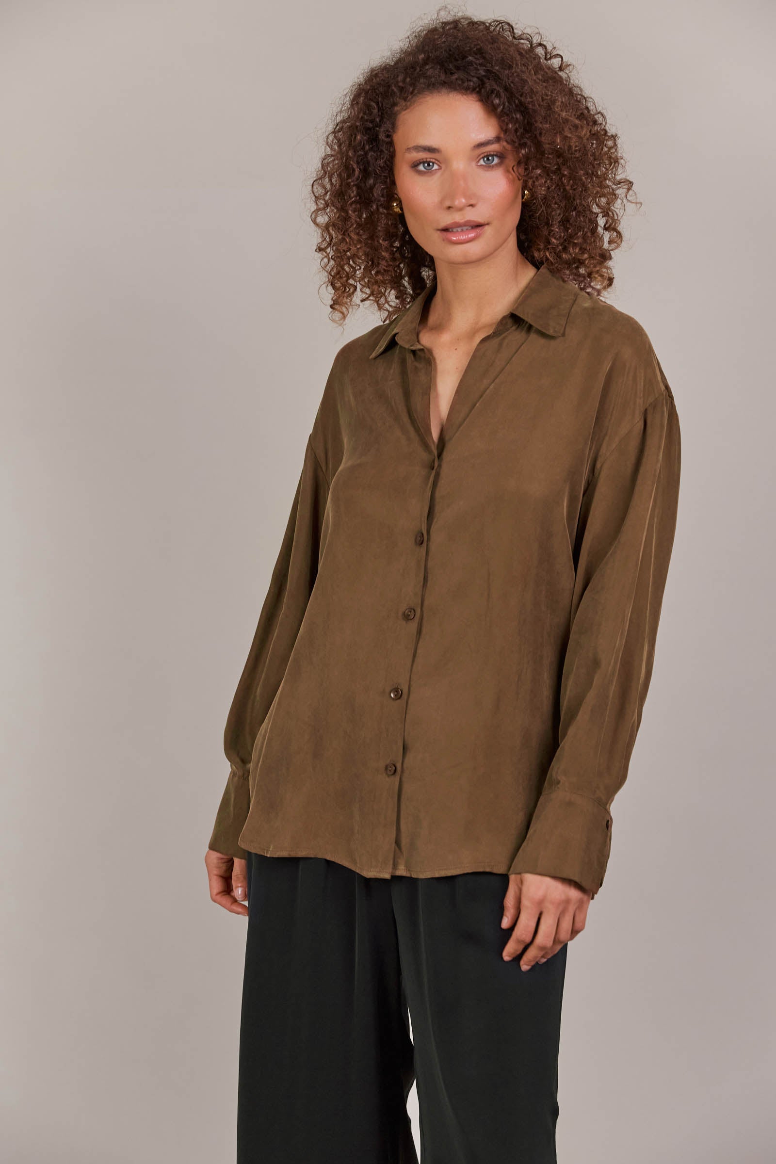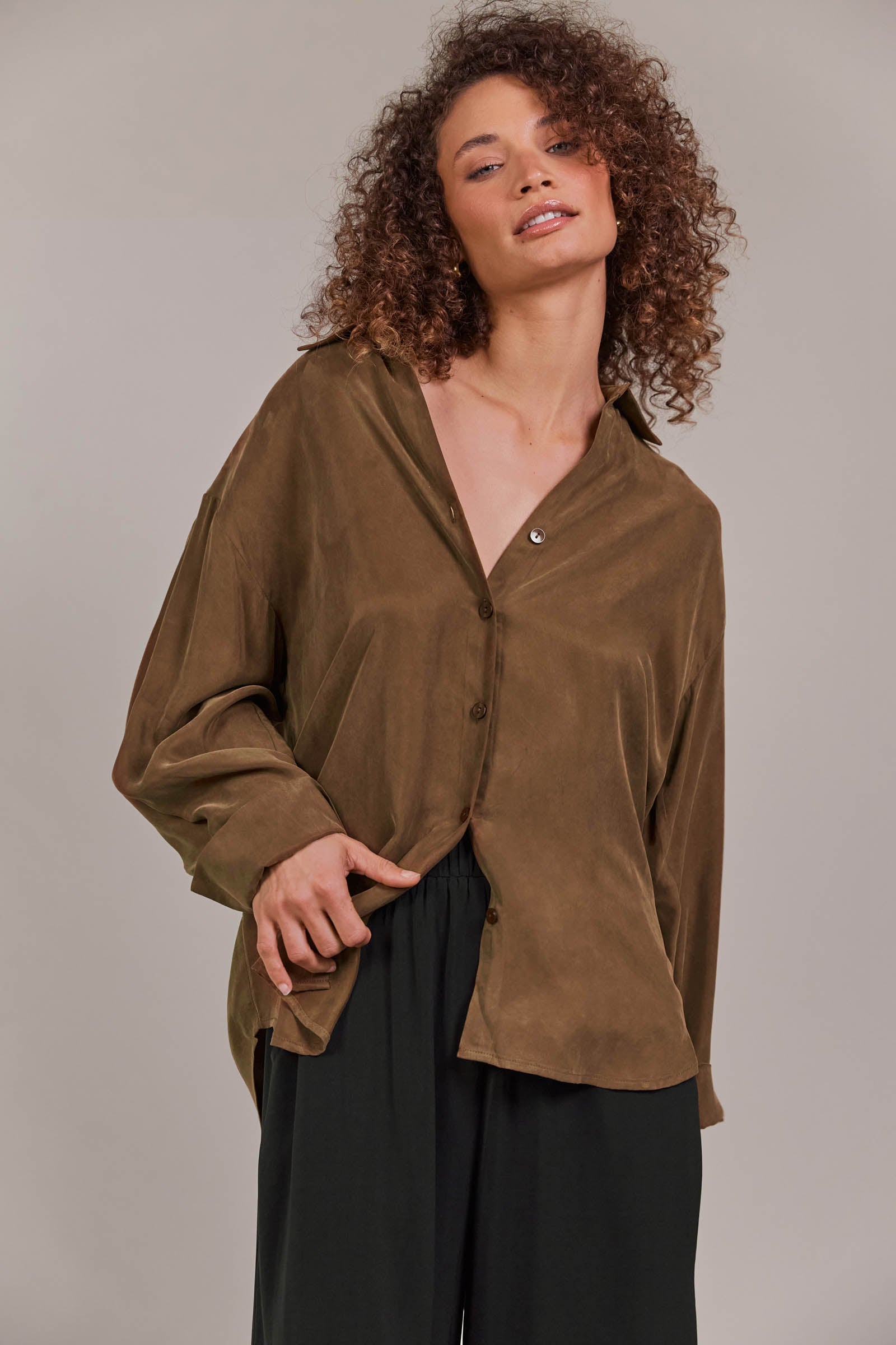 Every closet deserves a timeless button-down, and the Eden Shirt offers a luxurious take on this classic. Made from a soft cupro blend, it features an elegant drop shoulder and a flattering curved high-low hem that instantly elevates any look. Try it tucked into a flowing maxi skirt, layered over a tank with wide-leg pants, or buttoned up with jeans. However you style it, you'll always feel good in the Eden Shirt.