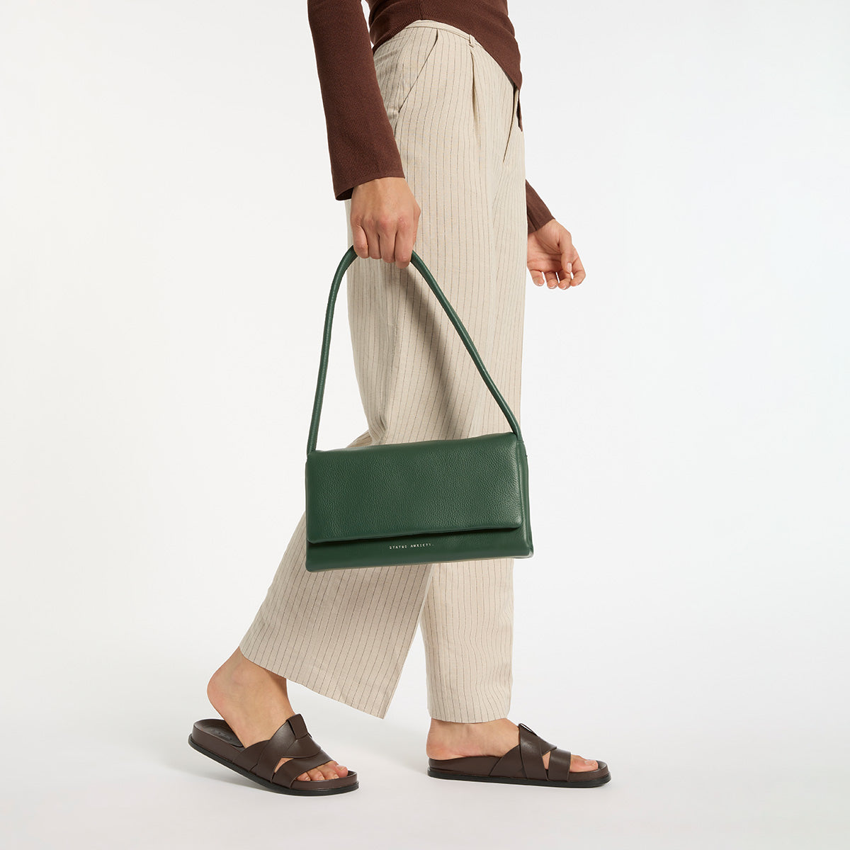 Elysian means "being of such surpassing excellence as to suggest inspiration by the gods." Though not inspired by divinity, 'Elysian' does reflect it with her generous strap drop, double magnet flap closure and handy back phone slider pocket. With her more structured form and thoughtful simplicity, 'Elysian' makes for the perfect day-to-night bag.