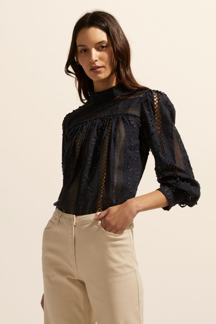 equally parts modest and playful, crafted in our custom cotton broderie with delicate 3d detailing the fabric is truly the hero of this signature piece. it contrasts bold scalloped details with delicate sheer sections and small 3d leaves for an on-trend yet feminine edge. please note that cami tops are sold separately. see product details below.