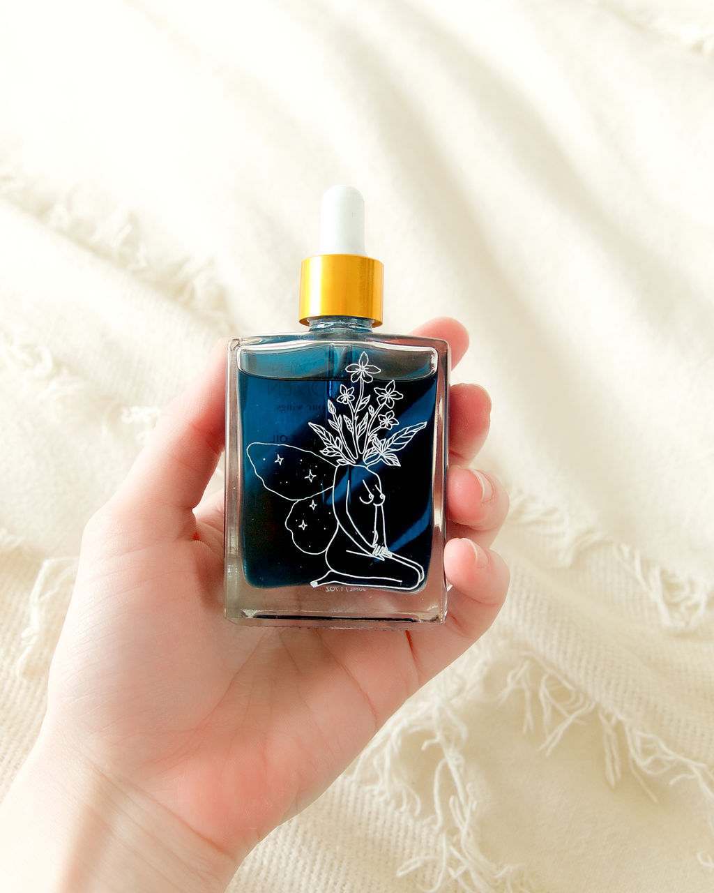 Blue Tansy Oil: Rare and 100% natural, this oil is extracted from the Moroccan Chamomile flower and turns deep blue during the extraction process. Known for it's superior skin healing properties, particularly easing inflammation and balancing hormones.
