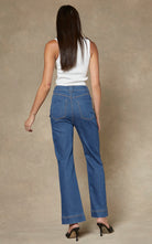 A high-rise stretch denim Maarte Jeans that sits on the ankle and has not so overly exaggerated wide legs. A cut that can be styled with a loose shirt or a fitted top. Certified by Oeko Tex 100, they're free from harmful chemicals and dyes.