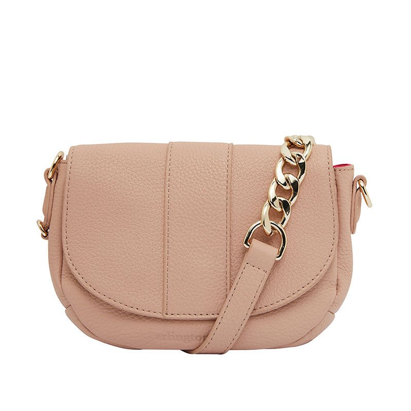 The Arlington Milne Mini Zara Saddle bag is new to the range for SS22/23 and has all the features of the bestselling Zara Saddle bag, in a compact size. Crafted from premium leather or suede, the Mini Zara features light gold hardware, embossed logo and two straps option, an adjustable/removable cotton webbing crossbody strap and a shorter chain and leather strap. The bag has three open top compartments, two with invisible magnetic clasps. The envelope closure opens to reveal Arlington Milnes signature hot pink twill lining and 3 credit card slots.