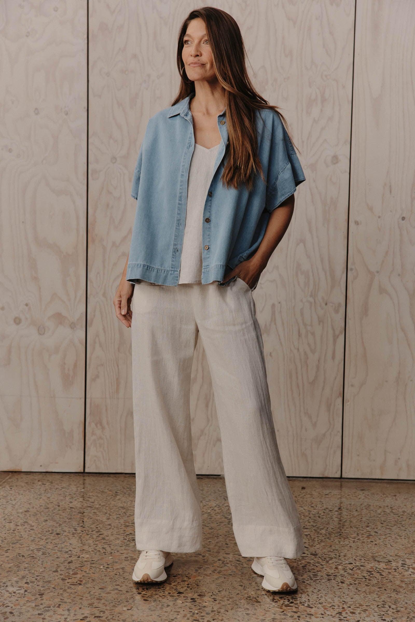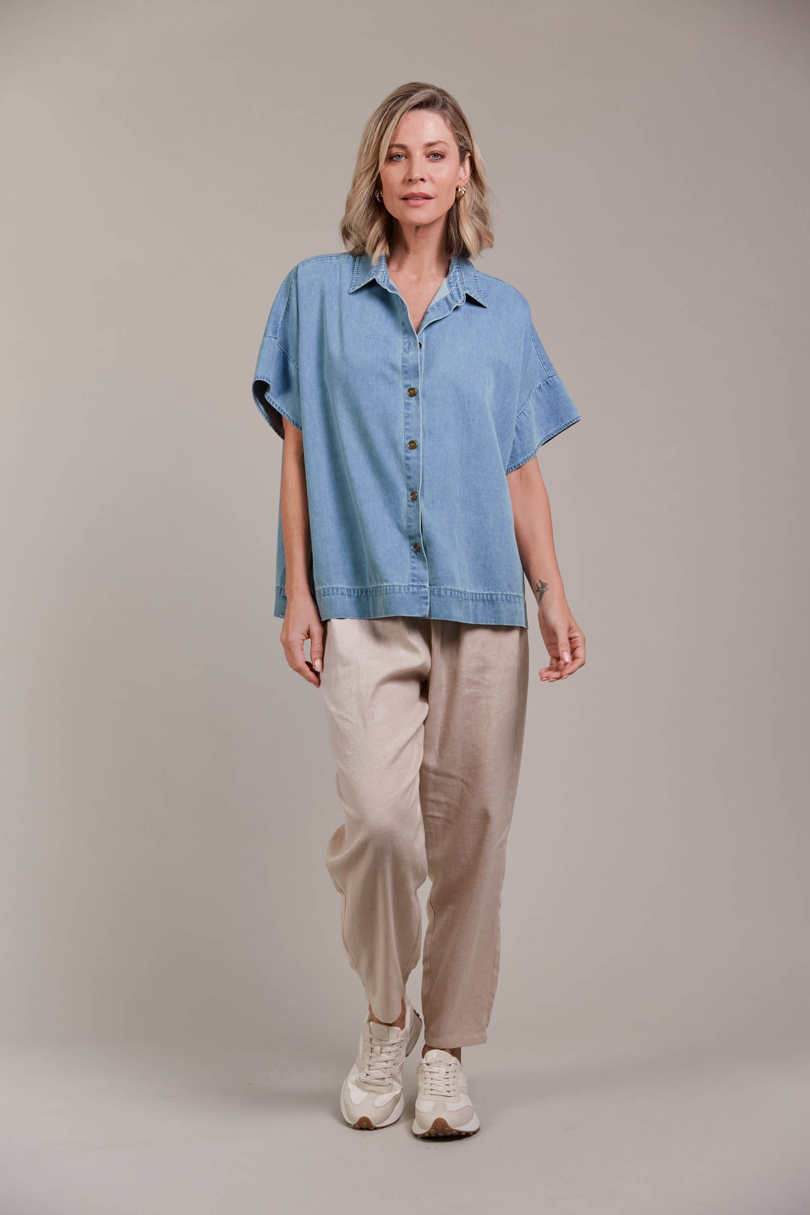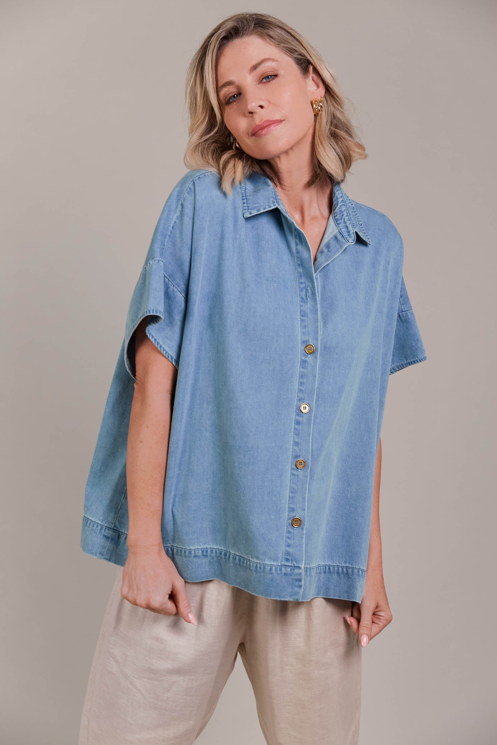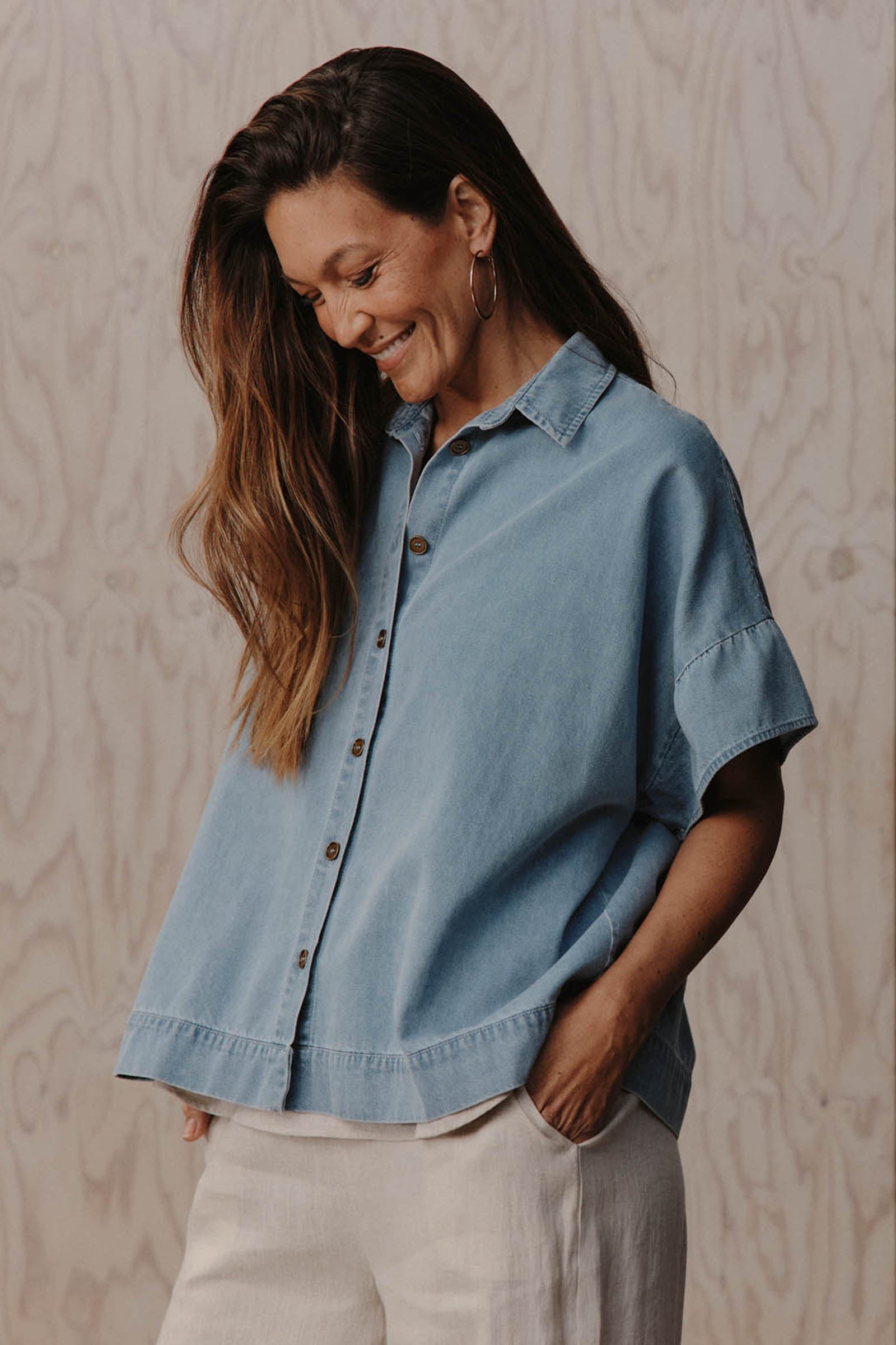 Step up your street style with the Pepi Denim Shirt, the ultimate piece for laid-back vibes. In 100% cotton, this oversized denim shirt combines durability with a casual feel. Its collared, button-down design and short sleeves make it a versatile piece. Want to make a statement? Go for a head-to-toe denim look, or keep things low-key with sleek joggers and fresh kicks for that modern, urban edge.