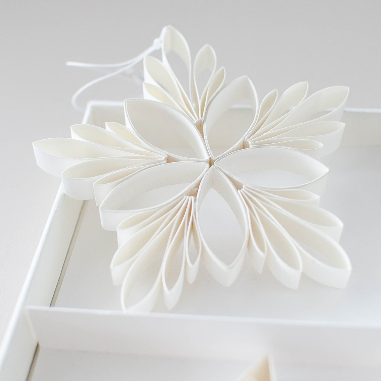Delicate, intricate and an artisan peice for your Christmas decor collection. This 3 piece set includes 3 paper quilling stars in different designs and comes in a gorgeous white gift box.
