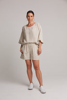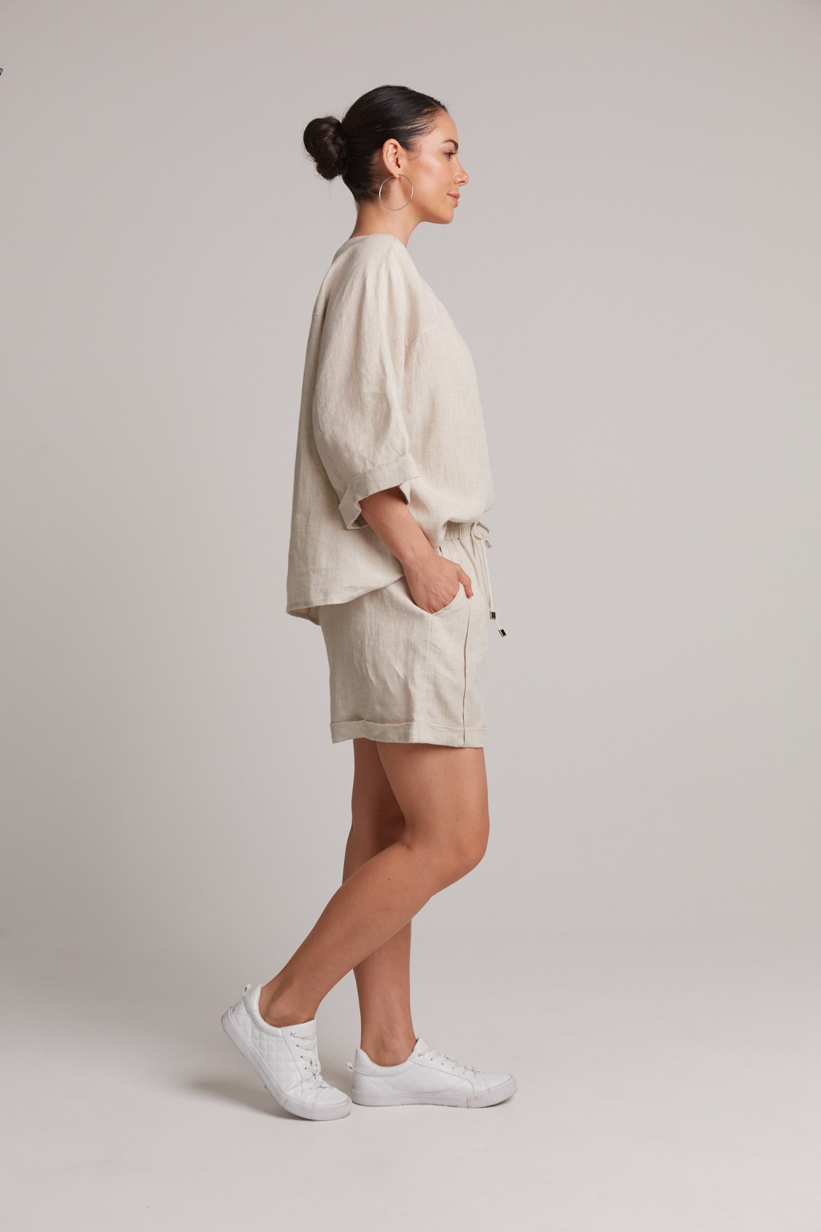 Crafted from breathable linen, the Studio Short is the next key essential in your wardrobe that you'll want to wear on repeat! The elasticised waist with a fabric drawstring will allow you to enjoy and move comfortably throughout your day. Pair it with a tank or t-shirt for a fresh summer-ready look!