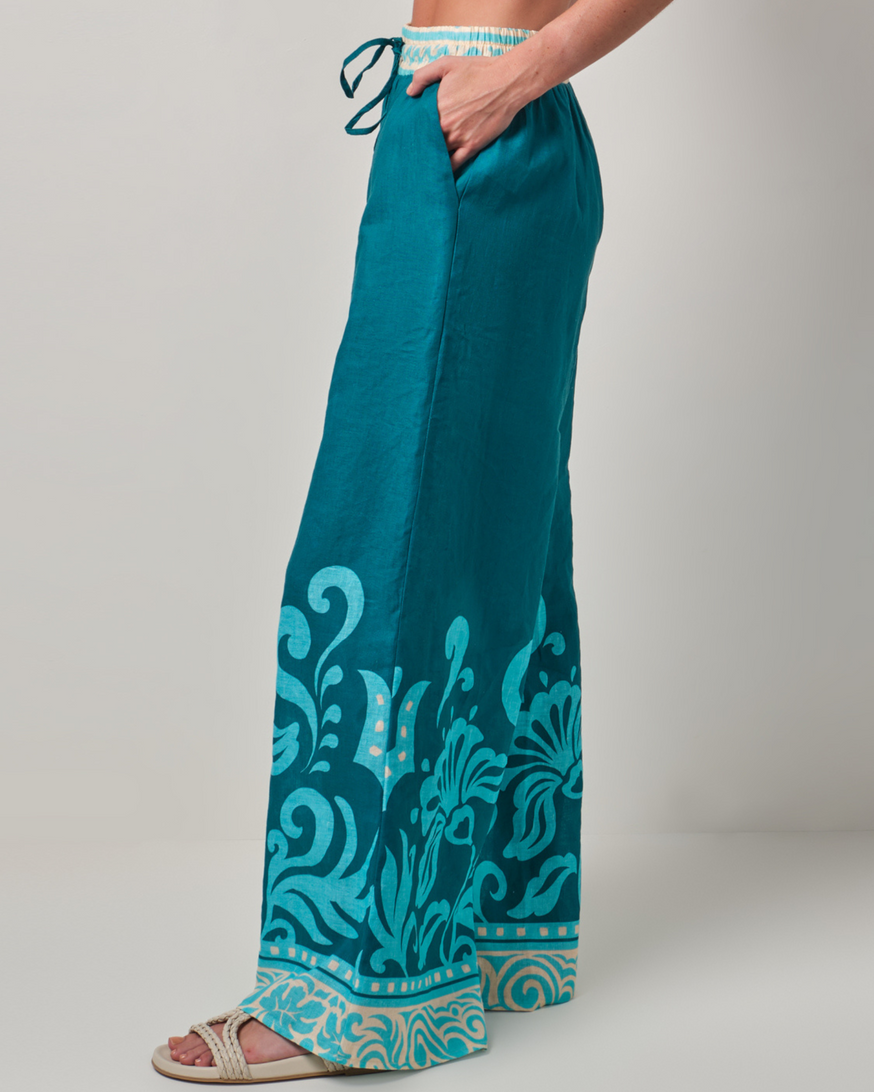The Vermont pant will become a fave in your wardrobe this season. With a wide-leg silhouette with an elasticated waistband and drawstring this pant that sits high on your waist. In the Gorgeous Moroccan Mosaic print you can pair this with any basic.