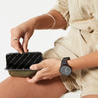 DescriptionIt was only a matter of time, wasn't it? Made for frivolous outings, the Volatile clasp frame purse is the new throw and go purse. Perfect for carrying cards, cash, lip gloss and the like.
